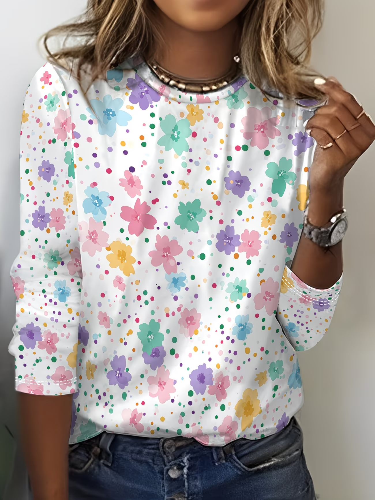 Damen Geblümt Langarm T-Shirts T-Shirt Rundhals Print Lässig T-Shirt mit Grafik Frühling/Herbst Oberteile