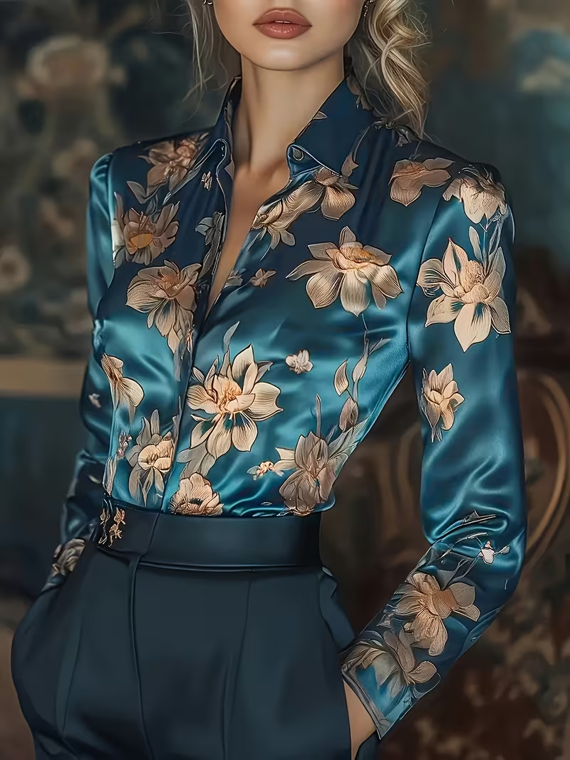 Damen Geblümt Schalkragen Langarm Bluse Lässig Täglich Frühling/Herbst Oberteile