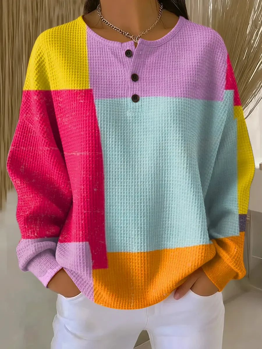Damen Multifarben Block Rundhals Print Lässig Frühling/Herbst Langarm Sweatshirt