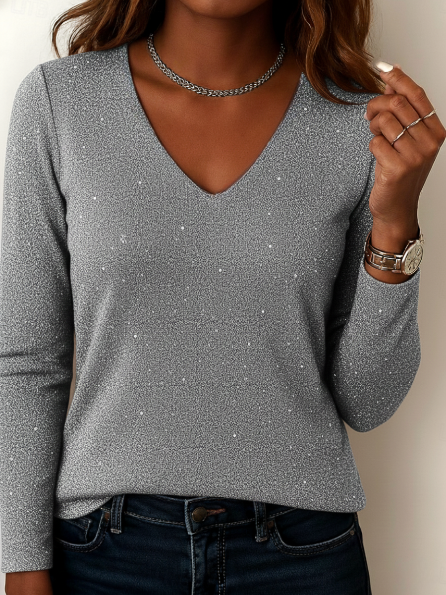 Damen Unifarben Langarm T-Shirts T-Shirt V-Ausschnitt Nahtverarbeitung Lässig Frühling/Herbst Oberteile