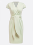 Damen Kurzarm Sommer Unifarben Gerüscht Kleid V-Ausschnitt Cocktail Ausgehen Urban Midi H-Linie Grün