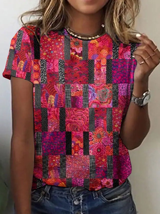 Damen Kurzarm T-Shirts T-Shirt Sommer Tier Rundhals Retro Oberteile